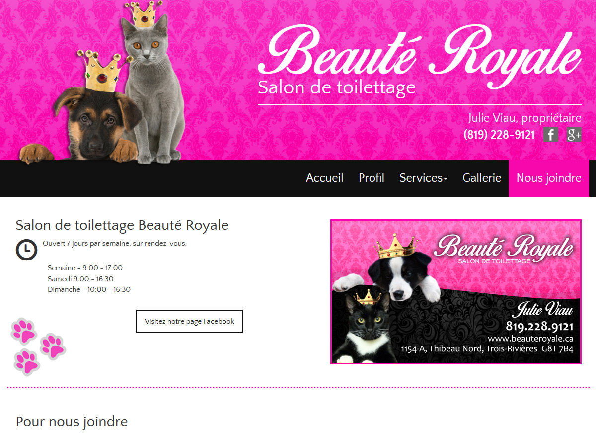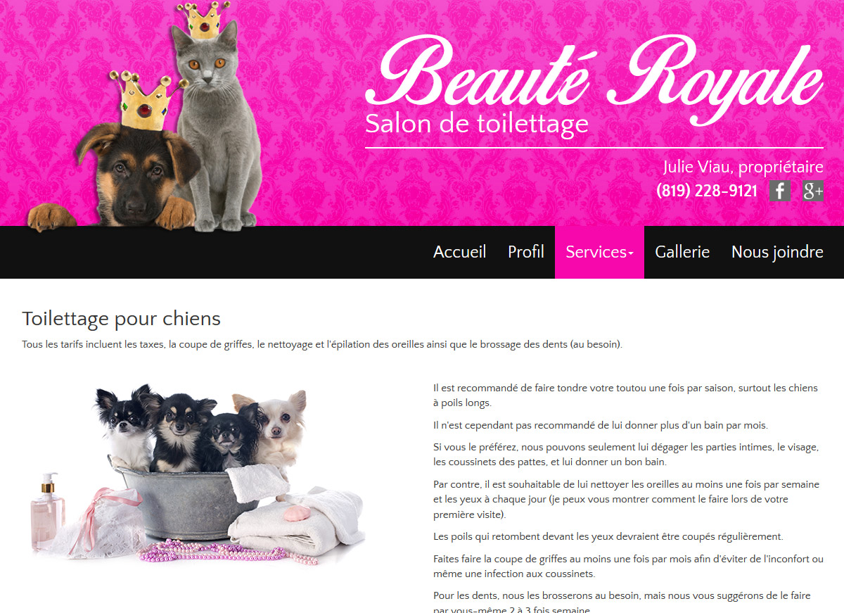 Un site Web pour un salon de toilettage pour animaux.