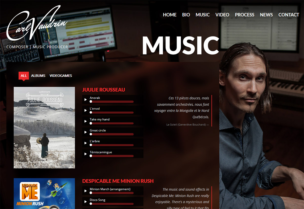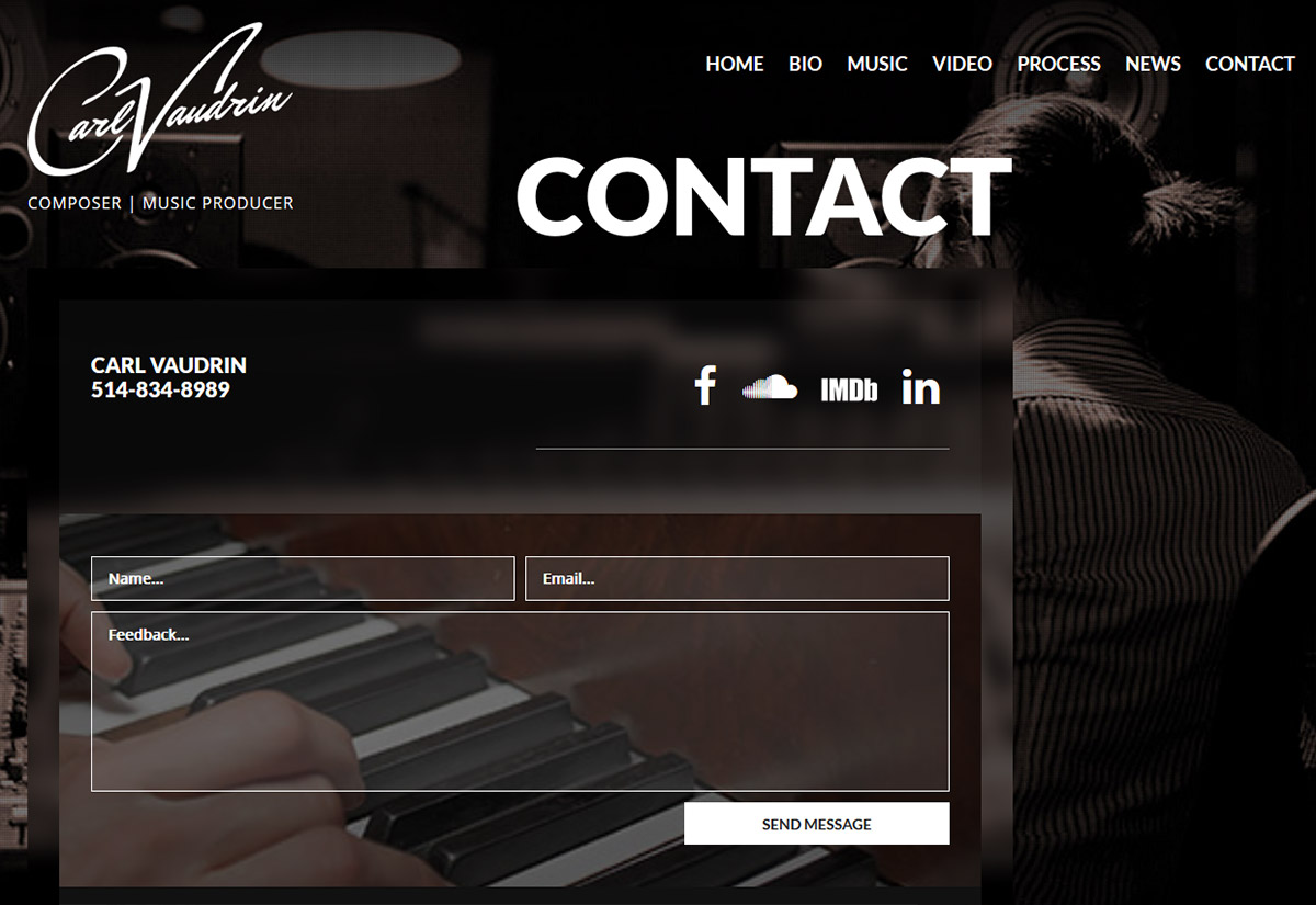 Un site Web pour un compositeur, réalisateur et pianiste.